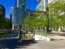 Square-Victoria–OACI station is a Montreal Metro station in the borough of Ville-Marie in Montreal, Quebec, Canada.[4] It is operated by the Société de transport de Montréal (STM) and serves the Orange Line. It is located in Victoria Square near the Quartier international de Montréal district. The station opened on February 6, 1967, four months after most of the initial network, and was briefly the terminus of the Orange Line until Bonaventure station was opened a week later.
