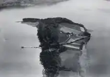 The former priory building is a listed as Swiss heritage site of national significance.[2] It was founded in 1107 when Count Wilhelm III of Burgundy-Mâcon gave his lands in Bellmund and on the island, at the time known as the "Island of the Counts", to Cluny Abbey. A small monastery was built on the island, possibly on the site of an earlier church. Traces of Merovingian graves, a Carolingian wooden monastery and an abandoned 11th century basilica[3] have been discovered near the current building. The small priory had at most five monks in residence and may have had additional rooms for travelers. On 10 February 1127 Wilhelm IV, the son of Wilhelm III, was buried in the monastery graveyard after he was murdered in Payerne a few days previously.[4] A monastery church was built north of the priory in the first third of the 12th century.[5] The vogt and patronage rights over the monastery remained with the Counts of Burgundy before probably passing to the Zähringens. They were followed by the Counts of Kyburg, in the 13th century and the Counts of Nidau in the first half of the 14th.[4] In 1484 the priory was dissolved and the estates passed to the college of canons of St. Vinzenz Cathedral in Bern. After Bern accepted the Protestant Reformation in 1530, the priory buildings were transferred to the Niederen Spital (a hospital) in Bern. The monastery church was demolished in 1577 and a wine cellar built below the former choir. Over the following years the priory building was used as a sheep farm and an inn and it was extensively modified, renovated and rebuilt. Originally built as a four sided building with a central courtyard, in 1810/15 the north wing was demolished turning it into a three wing, horseshoe shaped building.[3] The south wing was unified under a single roof in the 19th century and in 1911 it was renovated in the Swiss Heimatstil.[5]