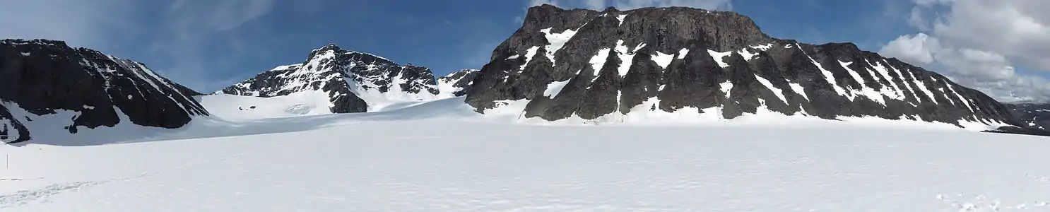 Storglaciären (Swedish for The Great Glacier) is a glacier in Tarfala Valley in the Scandinavian Alps of Kiruna Municipality, Sweden. The glacier is classified as polythermal having both cold and warm bottom temperatures. It was on Storglaciären that the first glacier mass balance research program began (immediately after World War II), which continues to the present day; this is the longest continuous study of its type in the world. Storglaciären has had a cumulative negative mass balance of -17 m between 1946 and 2006. The program began monitoring the Rabots Glaciär in 1982, Riukojietna in 1985, and Mårmaglaciären in 1988. All three of these glaciers have had a strong negative mass balance since monitoring began.[2]