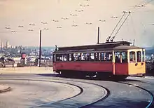 Streetcars operated by the Cincinnati Street Railway were the main form of public transportation in Cincinnati, Ohio, at the end of the 19th century and the start of the 20th century.[2] The first electric streetcars began operation in 1889,[3] and at its maximum, the streetcar system had 222 miles (357 km) of track and carried more than 100 million passengers per year. A very unusual feature of the system was that cars on some of its routes traveled via inclined railways to serve areas on hills near downtown. With the advent of inexpensive automobiles and improved roads, transit ridership declined in the 20th century and the streetcar system closed in 1951.[3][4]