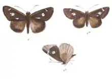 - ↑ de Nicéville, 1895 On new and little-known Butterflies from the Indo-Malayan Region J. Bombay nat. Hist. Soc. 9 (3): 259-321, pl. N-Q, (4): 366-410