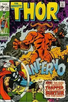 ![]() Surtur as depicted in Thor #176 (May 1970). Art by Jack Kirby. | |