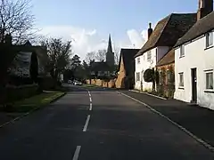 The village is in the middle of the parish, and includes many old houses. The "Three Horseshoes" Inn dates from the early 17th century. The cottages are of brick and timber with tiled and thatched roofs. The former rectory, now used as a farmhouse, is an ancient plastered building of brick and timber opposite the church. When it was undergoing restoration in 1846, a copy of the Solemn League and Covenant (signed by the then Rector of Swineshead) was discovered in the roof where it was perhaps hidden by the cautious rector of the time. There are the traces of two moats in the village.