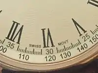 The Ordinance on the Use of «Switzerland» or «Swiss» for Watches first defines a "watch" (as opposed to a clock) by the dimensions of its movement in its Article 1, Definition of «watch».[3] Thereafter, the law defines a Swiss watch, the definition of which is dependent on certain aspects of its movement. The law then goes on to define under what circumstances a watch movement may be considered Swiss made. The law then sets forth the conditions for the use of the name Swiss on watches, on watch cases, on watch movements, on watch dials and on replacement watch parts. In sum, a watch is considered Swiss when it has been developed in Switzerland, it uses a Swiss movement, is assembled and controlled in Switzerland by the Manufacture d'horlogerie and when 60% of its manufacturing costs are Swiss.[5] The legal standards for the use of "Swiss made" on a watch are a very minimum standard, and the Swissness of a watch is largely dependent on the brand and its reputation.