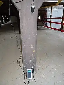Sylvatest is an acousto-ultrasonic measuring device that provides an overall diagnosis of the wood element, based on the speed and energy absorption of the transmitted ultrasonic wave.[1][2][3] The result given reflects the residual health of the wood in the trunk of the tree tested or the beam measured. These are non-destructive tests.[4][5]