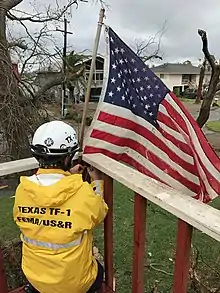 Texas A&M Task Force 1 personnel have responded to incidents such as 9/11 and Hurricane Katrina.[8] Texas Task Force 1 was dispatched to the April 17, 2013 West fertilizer plant explosion and were dispatched to assist in the wake of the 2013 Moore tornado. In 2014 they were dispatched to an area outside of Little Rock, Arkansas to assist after a number of tornadoes hit the area.[9] TX-TF1 had a record number of deployments in 2015, 2016, 2017, and 2018 as the team responded such natural disasters as the catastrophic 2015 Blanco River floods, the damaging May 2016 North American storm complex, the historic 2017 Atlantic hurricane season, to include Hurricane Harvey[10][11] and Hurricane Maria,[12] and the very busy 2018 Atlantic hurricane season responding to Hurricane Florence[13] and Hurricane Michael.[14][15]