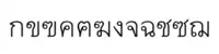 Also known as the ribbon style following its appearance of thick and thin lines formed by a broad-nibbed pen, it has been widely used for display signage since the nineteenth century. Best known among them is the Naris style, which has been recreated as a digital typeface. (Examples: Thai Naris, ABC Burgbarn)
