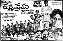 Thalli Prema (transl. Mother's Love) is a 1968 Telugu-language drama film, produced by M. Azam under the Azam Arts banner and directed by Srikanth. It stars N. T. Rama Rao, Savitri, and Ram Mohan with music composed by Sudarshanam.[1][2] The film was remade in Tamil as Kulama Gunama (1971), in Hindi as Swarag Se Sunder (1986) and again in Telugu as Naa Ille Naa Swargam (1991).