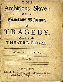 The Ambitious Slave; Or, A Generous Revenge is a 1694 tragedy by the English writer Elkanah Settle. It was first staged at the Theatre Royal, Drury Lane by the United Company.