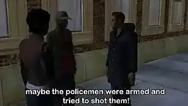 However, some critics felt that these problems with production quality helped to convey the film's message. In a MétaMorphoses article, Franck Beau considered the film's aesthetic a strong point because, having originated in video games, it completely differed from those of traditional animation and filming.[18] He argued that the work's power lay in its "simplicité extrême" (extreme simplicity) and in the "fonctionnement logique" (logical operation) of the underlying video game.[19] BusinessWeek wrote that "the combination of amateurish technique and a strong emotional message is oddly moving",[2] and Henry Lowood of Stanford University similarly thought that the awkward subtitles and cinematography created a sense of authenticity.[14] Lee found a filming precedent in Mathieu Kassovitz's 1995 work La Haine, also "lauded for its low-budget aesthetic as much as for its expressions of rage, fear, and alienation".[12] A discussion panel at the AMAS' 2006 Machinima Film Festival compared Chan's work to Do the Right Thing (1989) and The Battle of Algiers (1966).[3]