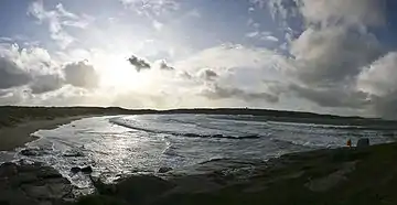 The Rosses (officially known by its Irish language name, Na Rosa;[1] in the genitive case Na Rosann) is a geographical and social region in the west of County Donegal, Ireland, with a population of over 7,000 centred on the town of Dungloe, which acts as the educational, shopping and civic centre for the area. Defined by physical boundaries in the form of rivers, as well as history and language use, the area has a distinctive identity, separate from the rest of Donegal. The extensive region lies between the parish of Gweedore to the north and the town of Glenties to the south. A large part of the Rosses is in the Gaeltacht, which means that Irish is the spoken language. The Rosses, Cloughaneely and Gweedore, known locally as "the three parishes" with 16,000 Irish speakers, together form a social and cultural region different from the rest of the county, with Gweedore serving as the main centre for socialising and industry.[2][3] Gaeltacht an Láir is another Irish-speaking area.