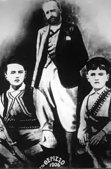 Venizelos next appeared on the public stage in the spring of 1905, when an insurrection against the Cretan government broke out. He was its leader, denouncing the corruption of Prince George's entourage[7] and the ruler's inability to persuade the Great Powers to accept the idea of Crete's union with Greece.[8] The Powers, especially Russia and Austria-Hungary, adamantly opposed union for fear it would disrupt the fragile political equilibrium in Europe, particularly in the Balkans. Additionally, they were unwilling to appease Greece, with its famously weak army and navy, at the expense of alienating Turkey.[9][10]