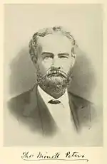 Born in Clarksville, the county seat of Tennessee's Montgomery County, Peters was eight when his family moved to Leighton, now in Colbert County, Alabama in 1819.[2] He briefly attended LaGrange College (located on the top of the LaGrange Mountain in Leighton, Alabama, which is now a famous historical site) and graduated from the University of Alabama with a bachelor's degree in 1834 and a master's degree in 1836; being admitted to practice law that same year. He practiced for several years in partnership with David G. Ligon.[3] He served in the Alabama House of Representatives (1845–1846) and the Alabama Senate (1847–1848). He was elected to represent Lawrence County, Alabama as by that time he had moved to Moulton, Alabama. Even though he owned slaves prior to the American Civil War, he was a steadfast Unionist and left Alabama during the war.[1][4] Peters considered the Confederates traitors and even wanted to hang Jefferson Davis and "all his traitorous set".[4] Despite this, Peters, a Republican, was elected to the Alabama Supreme Court in 1868 and became the Chief Justice in 1873. He was defeated for reelection in 1874, likely because he supported equal rights for women and African Americans. He returned to his law practice in Moulton and worked there until his death. He was inducted into the Alabama Lawyers' Hall of Fame in 2006.[1][5][6]