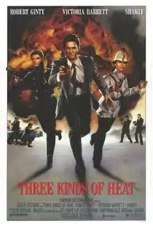 Three Kinds of Heat is a 1987 American action film written and directed by Leslie Stevens and starring Robert Ginty, Victoria Barrett, Shakti Chen, Jeannie Brown, Leslie Clark and Malcolm Connell. It was released on December 4, 1987, by The Cannon Group, Inc.[1][2][3]