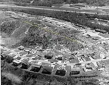 Developing 4 mi (6.4 km) northwest of Birmingham, near US 78, this extremely violent tornado proceeded northeastward through northern Jefferson County. Near the point of touchdown, Daniel Payne College suffered extensive damage, forcing it to permanently close due to the extent of the destruction. Rapidly intensifying, it generated F5 damage in the neighborhood of Hayes Highland, particularly along and near a lane and drive each named Smithfield, from which the tornado derived its moniker. In this area, abutting the intersection of I-65 and US 31, hundreds of homes were completely destroyed, many of which were completely swept away, despite being well-built. Some of the homes built into hillsides even had their cinder-block basement walls swept away, and at least one home was reportedly annihilated, with even its foundation said to be missing. Many trees in the area were snapped and debarked and vehicles were thrown and destroyed. A pair of dump-trucks were thrown through the air as well. Ted Fujita followed the tornado and supercell from an airplane and while surveying damage; he rated the Smithfield tornado F5, but initially considered assigning a rating of F6. (He once rated the 1970 Lubbock and 1974 Xenia tornadoes as such, but his preliminary estimates were subsequently revised to the official ratings of F5.) The NCEI incorrectly list the path as extending from west of Birmingham to east-northeast of Tarrant.[48]