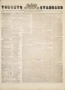 The Toronto Standard newspaper was published in Toronto before confederation. It is listed among Toronto's early newspapers[1] as the Toronto Standard and General Advertiser.[2][3] It was a weekly conservative newspaper, published by James Northey, that advocated for Protestant Ascendancy. Founded in 1848, it closed in 1849.[3]