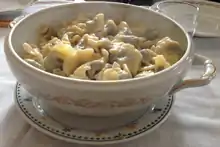 Tortelli cremaschi (dialect of Crema: turtèi cremasch) represents the main dish of the local Cremasque culinary tradition. While tortelli typically have a savoury filling, that of tortelli cremaschi is sweet and cannot be found elsewhere in Italy.[1]