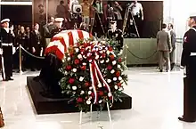 In 2007, the Truman Library Institute announced a $1.6 million preservation and restoration of his working office to preserve the artifacts it contains and allow for easier public viewing.[15] The three-stage project completed in 2009 and features an enclosed limestone pavilion for better access and viewing and an updated climate control system. The office appears today just as it did when Harry Truman died on December 26, 1972.[16]
