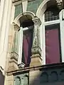 The Turkey Cafe underwent yet another renovation process after Rayner Opticians Ltd. purchased the property in 1982. The interior was altered greatly to accommodate the new business that it would house, and curved windows were added to the above stories. However, the etched glass windows on the ground floor and the front arch were kept and restored to their original condition.[10] Rayners tracked down the Hathernware Ceramics Ltd. of Loughborough who was the only firm experienced in using the terra cotta material needed for restoration.[11] The opticians were also fortunate enough to have the original architectural drawings and a 1910 photograph, which architects Sawday and Moffat had in their archives. Rayners then commissioned Deardon Briggs Designs Ltd. to follow these plans for the restoration process and creation of reproductions. In the end, the restoration of the exterior cost over £30,000, with Leicester City Council contributing £5,000.[12]