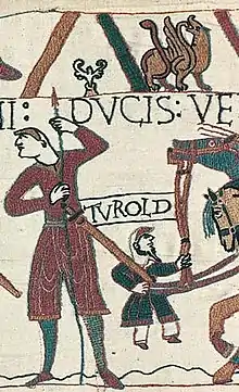 Turold is one of the tituli on the Bayeux tapestry. Which of two figure is being identified is uncertain, as is the identification of the namesake with a known historical person. He may be the same person as Turold of Rochester.