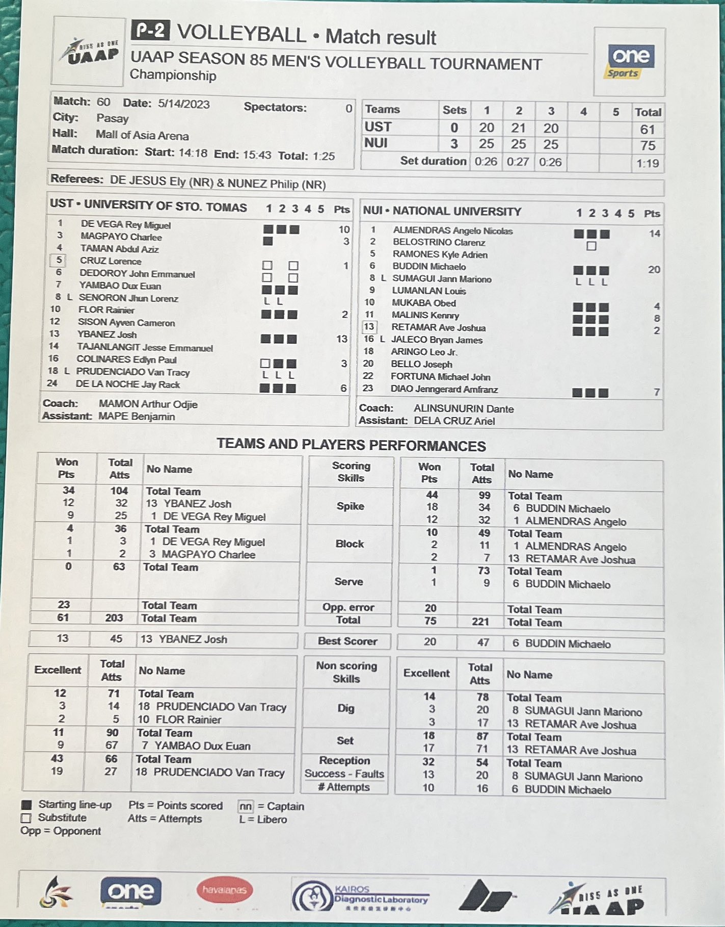 - ↑ @uaap_official (February 25, 2023). "UST Tiger Spikers Men's Volleyball Team" (Tweet). Retrieved February 25, 2023 – via Twitter.