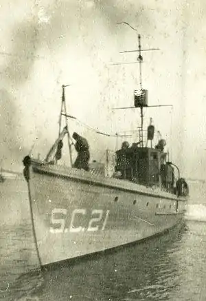 SC-21 was a wooden-hulled 110-foot (34 m) submarine chaser built at the New York Navy Yard at Brooklyn, New York. She was commissioned on either 20 September[3] or 19 October[4] 1917 as USS Submarine Chaser No. 21, abbreviated at the time as USS S.C. 21.