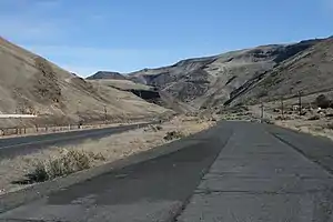 Umtanum Ridge Water Gap is a geologic feature in Washington state in the United States. It includes the Yakima Canyon (or "Yakima River Canyon"), and is located between the cities of Ellensburg and Yakima in central Washington.[1] Washington State Route 821 (formerly numbered "U.S. Route 97") was once the main route between Ellensburg and Yakima.[2][3] The old highway still runs close to the river through the canyon, with Interstate 82 (which replaced the old highway) currently carrying most traffic between Ellensburg and Yakima on large bridges nearby.