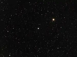 ![]() V373 Cassiopeiae (center) in optical light. The bright yellow star to the upper right of V373 Cas is ρ Cas. | |