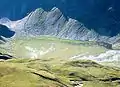 Path ascending into the Val Vignun, on the left the Piz Uccello