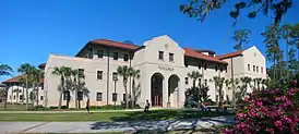 The school that would become Valdosta State University was founded in 1906. Colonel W.S. West led the legislation through the Georgia Senate, and C.R. Ashley and E.J. McRee pushed it through the House. However, no funds were appropriated for it until 1911 when the state allocated $25,000. The city of Valdosta raised $50,000, and Col. West gave the property that is now the main part of campus to the state for use by the new institution. The president chosen was Richard Holmes Powell. His travels in the American southwest led him to choose the Spanish Mission style of architecture for the institution's buildings.[3] The school opened as South Georgia State Normal College (SGSNC) in January 1913, with three college freshmen and 15 sub freshmen. The early students were required to wear a school uniform and paid $10 per year for tuition and $12 per month for food and board. Most came to be teachers and studied subjects from literature to physics to agriculture. In 1922, the school became a four-year college and the legislature changed the name to Georgia State Womans College.