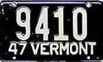 1947 | Embossed white serial on black plate; "47 VERMONT" at bottom | none | 12345 | 1 to approximately 93000 | |