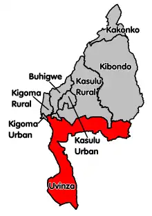 The Vinza (Wavinza in Swahili) are a Bantu ethnic and linguistic group based in Uvinza District of Kigoma Region, Tanzania. In 1987 the Vinza population was estimated to be 10,000.[4] The Vinza people speak the Vinza language, also known as Kivinza,[5] which belongs to the Central Bantu language family. Many Vinza people also speak the Swahili language.[6] The Vinza are also sometimes called Binza and Mabinza.[7]