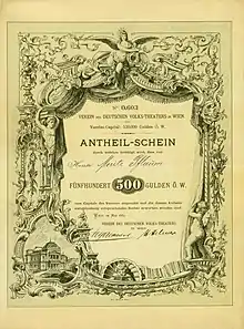 The Volkstheater in Vienna (roughly translated as "People's Theatre") was founded in 1889 by request of the citizens of Vienna, amongst them the dramatist Ludwig Anzengruber and the furniture manufacturer Thonet, in order to offer a popular counter weight to the Hofburgtheater. It was erected according to designs by Ferdinand Fellner and Hermann Helmer, who attempted to reconcile their plans with historicism. It is located in Neubau, the seventh district of Vienna.
