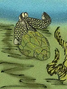 Vukhuclepis lyhoaensis is an extinct, primitive antiarch placoderm.[1] Specimens are of mostly complete thoracic armor from the Early Devonian Ly Hoa Formation in Vietnam.[2] The armor is very similar to that of Yunnanolepis, but is distinguished by a unique pattern of raised ridges radiating from a point at the center of the dorsal shield of the thoracic armor. A similar, albeit more floral-looking pattern is seen in the Chinese Mizia. V. lyhaoensis' armor is further ornamented with small tubercles.