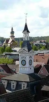 Aalen (German pronunciation: [ˈaːlən] ⓘ) is a former Free Imperial City located in the eastern part of the German state of Baden-Württemberg, about 70 kilometres (43 mi) east of Stuttgart and 48 kilometres (30 mi) north of Ulm. It is the seat of the Ostalbkreis district and is its largest town. It is also the largest town in the Ostwürttemberg region. Since 1956, Aalen has had the status of Große Kreisstadt (major district town). It is noted for its many half-timbered houses constructed from the 16th century through the 18th century.[3]