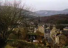 On the moorland above the village is a memorial to the dialect poet, Edwin Waugh, known as Waugh's Well. Since 1993 fell runners from the surrounding communities have gathered annually to run a four-mile circuit of the hills above the village, passing the well.
