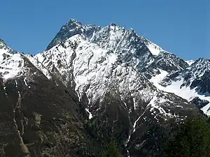The Watzespitze or Waze (3,533m) is the highest mountain in the Kaunergrat group of the Ötztal Alps. It is located in Tyrol, Austria. The mountain has two summits, the main summit and the south summit at 3,503m. It is located between the valleys of Kaunertal in the east and Pitztal in the west. The mountain is a challenging climb due to its hanging glaciers and steep ridges.[1]