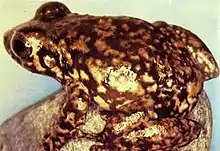 The web-footed coqui, stream coqui, Puerto Rican stream frog or Karl's robber frog (Eleutherodactylus karlschmidti), is a possibly extinct Puerto Rican frog species in the family Eleutherodactylidae.[1][3][4] It was first described by Chapman Grant in 1931, and was named after herpetologist Karl Patterson Schmidt.[2][5] It is the largest Eleutherodactylus species of Puerto Rico.[6]
