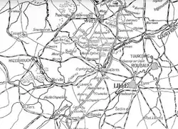 On the left of the attack, two companies of the German Jäger Battalion 11 with c. 200 men and a machine-gun, delayed the advance for more than six hours until forced to retreat, which stopped the advance.[25] Although aerial photography had been useful, it was unable efficiently to identify the strong German defensive points. Lack of communication also meant that the British commanders had been unable to keep in touch with each other and the attack became disorganised, which disrupted the delivery of supplies.[26] On 12 March, German forces commanded by Crown Prince Rupprecht, launched an abortive counter-attack which forced the British to use most of their artillery ammunition; the British offensive was postponed on 13 March and abandoned two days later.[27]