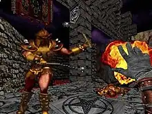 Witchaven II: Blood Vengeance is a fantasy-themed first-person shooter for DOS compatible operating systems released in 1996 by Capstone Software. It is a sequel to 1995's Witchaven. Both games use the Build engine. It was Capstone's last proprietary game before they and their parent company Intracorp went bankrupt. In Witchaven II, the player controls the returning knight Grondoval, the hero of the first game, as he is trying to stop an evil witch from carrying a titular blood vengeance in revenge for him having slain her sister in the original game. It received generally negative reviews, with criticism directed at its controls, enemy AI, and general mediocrity as compared to other first-person shooters coming out at the time. The game is supported by the BuildGDX source port.[1]