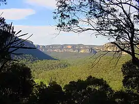Wolgan Valley is a small valley located along the Wolgan River in the Lithgow Region of New South Wales, Australia. The valley is located approximately 32 kilometres (20 mi) north of Lithgow and 150 kilometres north-west of Sydney.[1] Accessible by the Wolgan Valley Discovery Trail (Wolgan Road) from the Castlereagh Highway, the road travels through the valley leading onto the historical village of Newnes and its extensive industrial ruins.