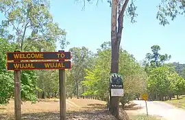 ![]() Sign welcoming people to Wujal Wujal, having travelled from the south along the Bloomfield Track | |||||||||||||||