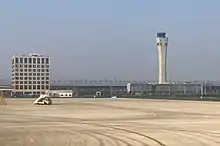 The new air-traffic control tower was put into use on 7 January 2016, together with the second runway.[22] The control tower is 93.5 m (307 ft) in height and its shape resembles the Jiahu Gudi (bone flute) discovered in Henan.