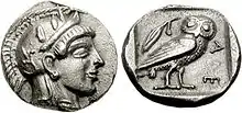 The Yehud coinage is a series of small silver coins bearing the Aramaic inscription Yehud.[2] They derive their name from the inscription YHD (𐤉𐤄𐤃), "Yehud", the Aramaic name of the Achaemenid Persian province of Yehud; others are inscribed YHDH, the same name in Hebrew. The minting of Yehud coins commenced around the middle of the fourth century BC (ca 350 BC), and continued until the end of the Ptolemaic period.[3]
