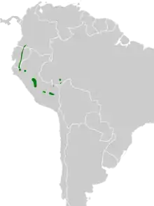 Its natural habitats are subtropical or tropical moist lowland forests and subtropical or tropical moist montane forests.