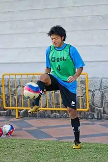 ![]() Yoshinaga Arima warming up in a friendly match against Woodlands Wellington at Woodlands Stadium on 29 January 2014. | |||