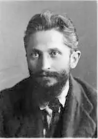 Upon his release in 1915, he was exiled near Minusinsk in the Yeniseysk Governorate.[2] In the exile, Angarietis got acquainted with Elena Stasova and other communists and became involved with the Russian Social Democratic Labour Party (bolsheviks) (RSDLP(b)) joining its ranks in 1916.[1] He wrote many articles to communist and social democratic press using the pen name Angarietis (from the Angara River) which later became his last name. After the February Revolution, he moved to Petrograd and became actively involved with the Central Bureau of Lithuanian Sections of RSDLP(b).[2] Together with Vincas Mickevičius-Kapsukas he planned a socialist revolution in Lithuania. In March 1918, Angarietis was sent to Voronezh and tasked with printing communist literature at a nationalized Lithuanian press.[3] He edited newspaper Tiesa, published numerous books, and otherwise spread the communist ideology among Lithuanian war refugees.[2]