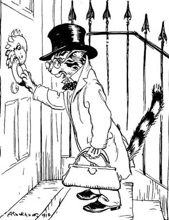 A Cat heard that the Birds in an aviary were ailing. So he got himself up as a doctor, and, taking with him a set of the instruments proper to his profession, presented himself at the door, and inquired after the health of the Birds. "We shall do very well," they replied, without letting him in, "when we've seen the last of you."