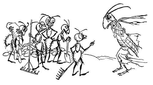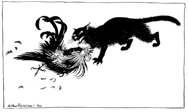 A Widow, thrifty and industrious, had two servants, whom she kept pretty hard at work. They were not allowed to lie long abed in the mornings, but the old lady had them up and doing as soon as the cock crew. They disliked intensely having to get up at such an hour, especially in winter-time: and they thought that if it were not for the cock waking up their Mistress so horribly early, they could sleep longer. So they caught it and wrung its neck. But they weren't prepared for the consequences. For what happened was that their Mistress, not hearing the cock crow as usual, waked them up earlier than ever, and set them to work in the middle of the night.