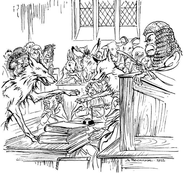A Wolf came upon a Lamb straying from the flock, and felt some compunction about taking the life of so helpless a creature without some plausible excuse; so he cast about for a grievance and said at last, "Last year, sirrah, you grossly insulted me." "That is impossible, sir," bleated the Lamb, "for I wasn't born then." "Well," retorted the Wolf, "you feed in my pastures." "That cannot be," replied the Lamb, "for I have never yet tasted grass." "You drink from my spring, then," continued the Wolf. "Indeed, sir," said the poor Lamb, "I have never yet drunk anything but my mother's milk." "Well, anyhow," said the Wolf, "I'm not going without my dinner": and he sprang upon the Lamb and devoured it without more ado.
